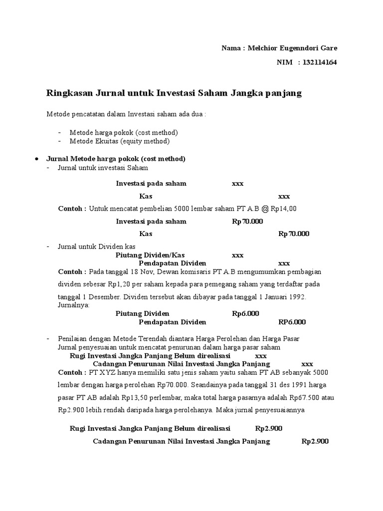 Contoh Soal Investasi Jangka Panjang Dalam Saham