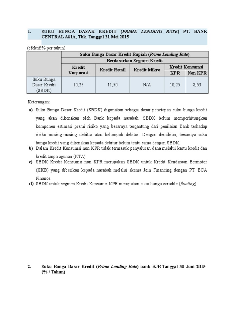 Bca memberikan opsi bagi permohonan personal loan yang tidak memiliki payroll di bca, yaitu pengajuan nasabah pemilik kartu kredit bca. Suku bunga dasar kredit (sbdk) digunakan sebagai dasar penetapan suku bunga kredit yang akan dikenakan oleh bank kepada nasabah. Pinjaman untuk membiayai pembelian barang modal.